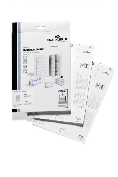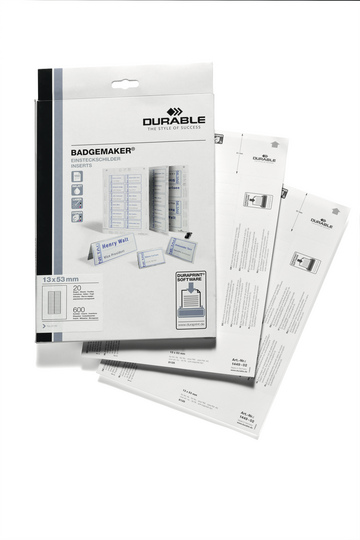 Durab;e Name Badge Insert 13 x 53mm 144902. Pack of 600 Inserts.30 Sheets 20 Inserts per sheet