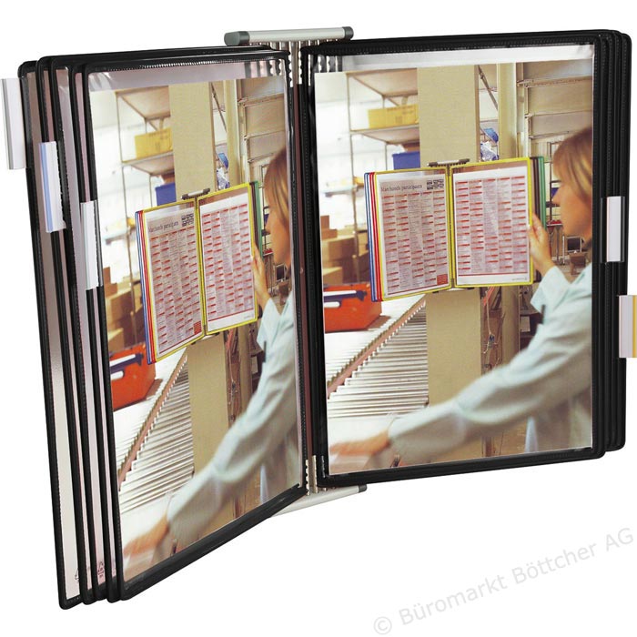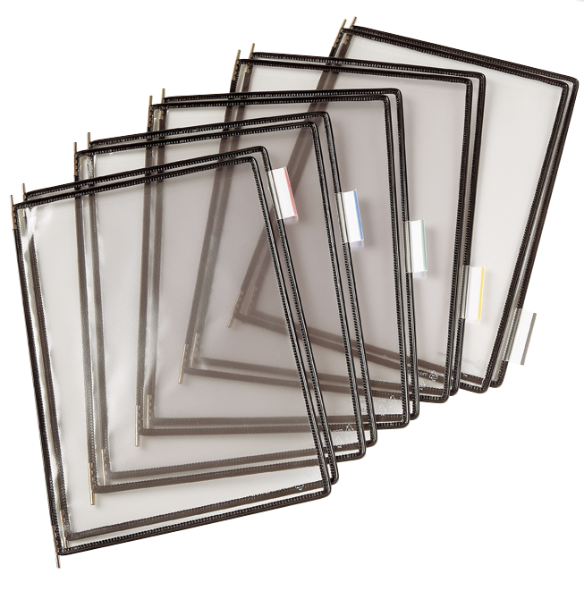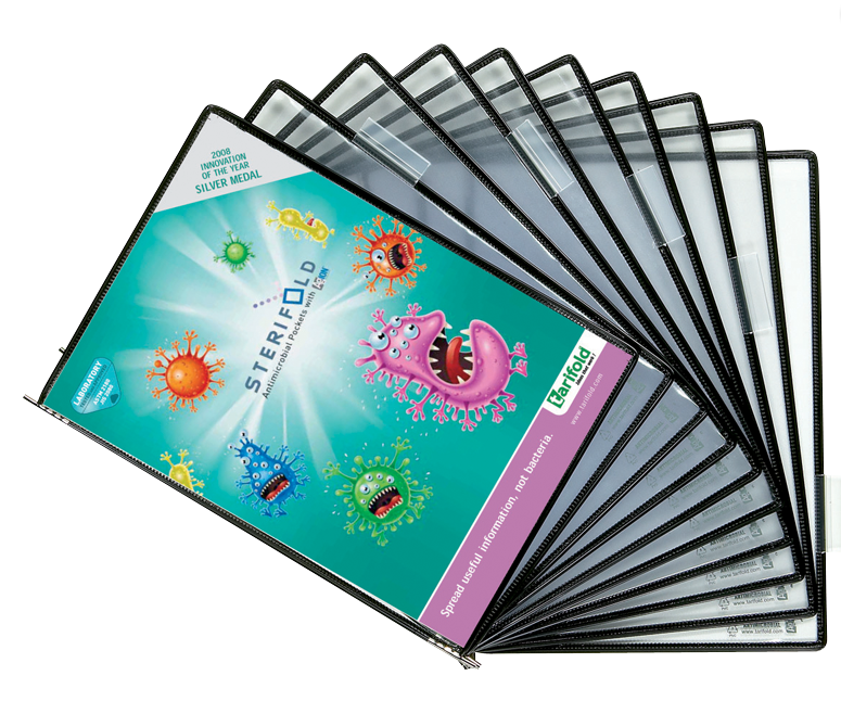 Tarifold Sterifold A4 Wall Unit with 10 Black Pockets. Ideal for all offices, industrial environments, kitchens, laboratories, public places etc. Contains 10 anti-microbial Sterifold pivoting pockets. Pockets accommodate A4 sheets. Complies with European